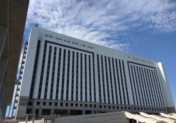 順義區(qū)行政中心項目是區(qū)級重點工程,建筑物占地面積約2.5萬平方米,總建筑面積約9萬平方米(其中:地上十四層,建筑面積約6萬平方米;地下兩層,建筑面積約3萬平方米)。由主樓、裙房、車庫組成:主樓十四層為運動中心,設有圖書室、工作餐廳等,其余各層均為辦公用房;裙房用于應急指揮中心、自行車庫和信息中心,為中間高三面低的坡屋面,上面設有一條八字形汽車坡道和一個室外大臺階通往主樓二層 南側主入口。汽車坡道旁為花池,設計為種植屋面做法;地下二層為人防指揮所,地下一層為坪站結合。該項目充分體現(xiàn)了綠色、低碳、節(jié)能的建設理念,為現(xiàn)代化辦公建筑的典范之作。