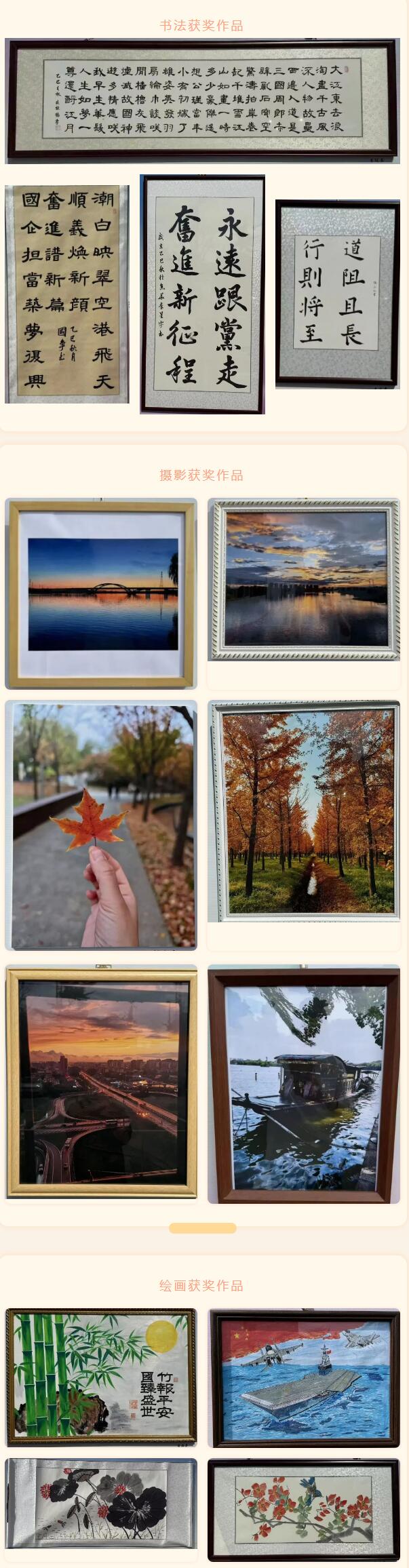 活動現(xiàn)場布置井然有序,50余幅攝影、繪畫、書法作品集中展示,題材豐富、形式多樣。參展作品緊扣“賀華誕、繪盛世”主題,聚焦新時代發(fā)展成就,展現(xiàn)順義建投責(zé)任擔(dān)當(dāng),講述“青鋒英才奮斗故事”,兼具思想性與藝術(shù)性,充分展現(xiàn)了順義建投干部職工積極向上的精神風(fēng)貌。展覽活動現(xiàn)場,參展人員認(rèn)真觀展,依據(jù)評選規(guī)則進(jìn)行投票,最終評選出一等獎3名、二等獎5名、三等獎6名。公司領(lǐng)導(dǎo)為獲獎作者頒發(fā)榮譽證書,對其優(yōu)秀創(chuàng)作成果予以表彰。書法獲獎作品攝影獲獎作品