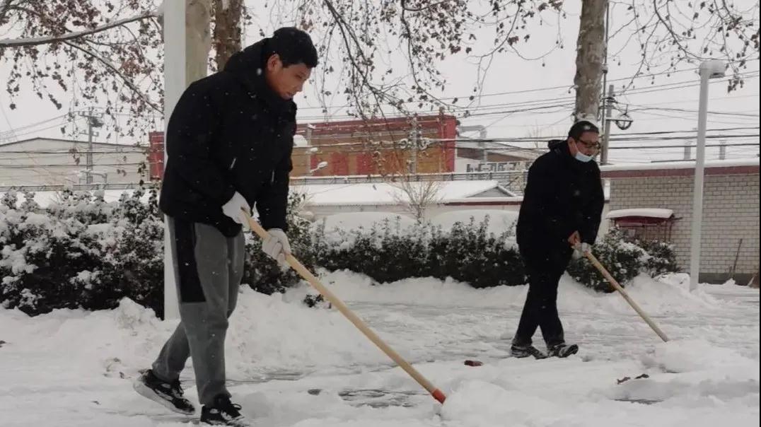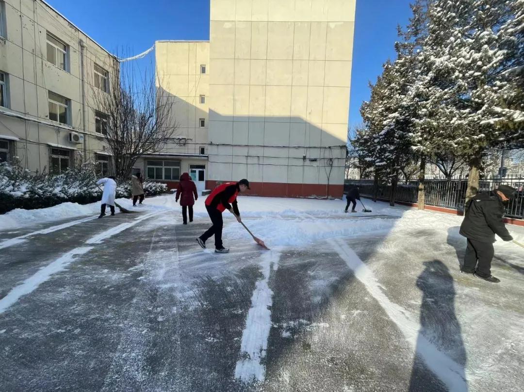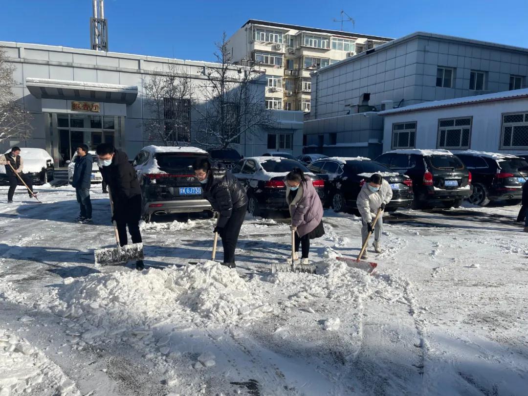 掃雪現(xiàn)場(chǎng),黨員干部帶頭沖在最前面,不畏嚴(yán)寒,大家齊心協(xié)力,配合默契。經(jīng)過大家的共同努力,辦公場(chǎng)所及周邊道路的積雪得到了清除,職工道路交通出行安全得到了保障。