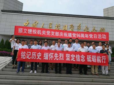 銘記歷史,緬懷先烈,堅(jiān)定信念,砥礪前行,北京順義建設(shè)投資服務(wù)公司機(jī)關(guān)黨支部開展“迎七一”主題黨日活動(dòng)。在建黨96周年來臨之際,6月29日,順義建投27名黨員干部和入黨積極分子前往中國人民抗日戰(zhàn)爭紀(jì)念館和盧溝橋參觀學(xué)習(xí),重溫革命歷史,緬懷革命先烈。