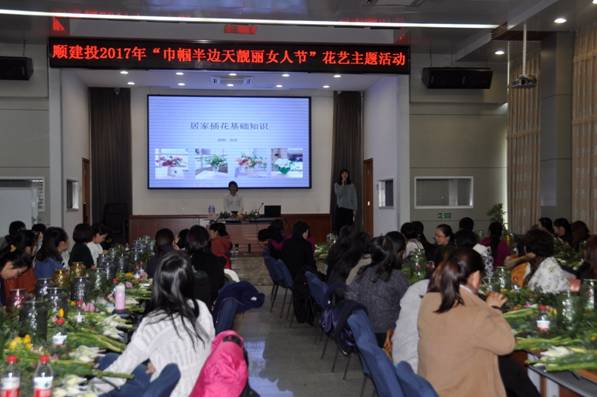2017年3月6日,順建投工會圍繞提高女職工藝術修養(yǎng),提升自身素質,做一名智慧女性、快樂女人的目標,在三八節(jié)來臨之際舉辦花藝主題活動,全公司共90多名女職工參加。