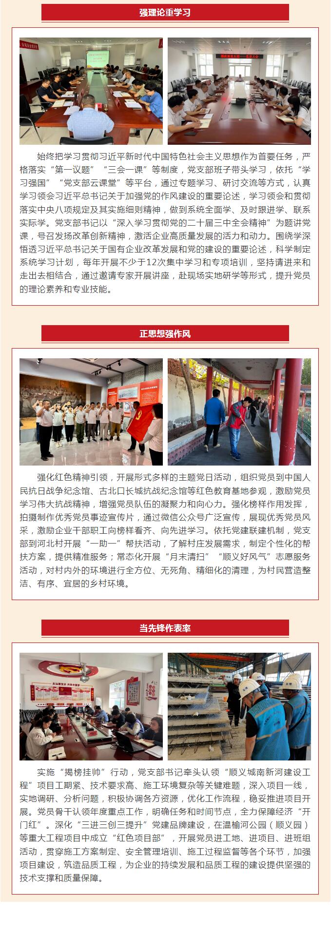 北京順政通工程監(jiān)理有限公司黨支部注重發(fā)揮戰(zhàn)斗堡壘作用和黨員先鋒模范作用,引領(lǐng)帶動企業(yè)職工爭先創(chuàng)優(yōu)、敢爭一流,聚力賦能企業(yè)高質(zhì)量發(fā)展。