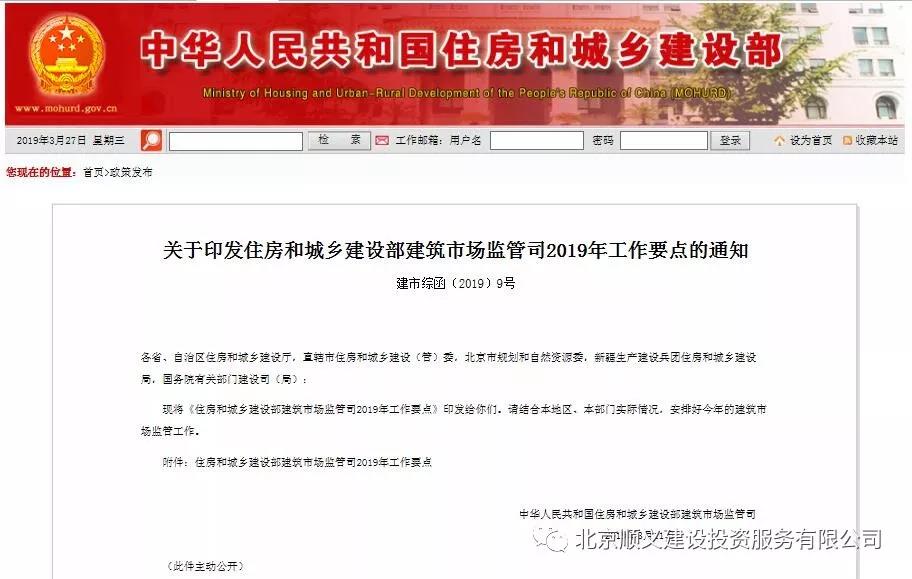 關(guān)于印發(fā)住房和城鄉(xiāng)建設(shè)部建筑市場監(jiān)管司2019年工作要點的通知
