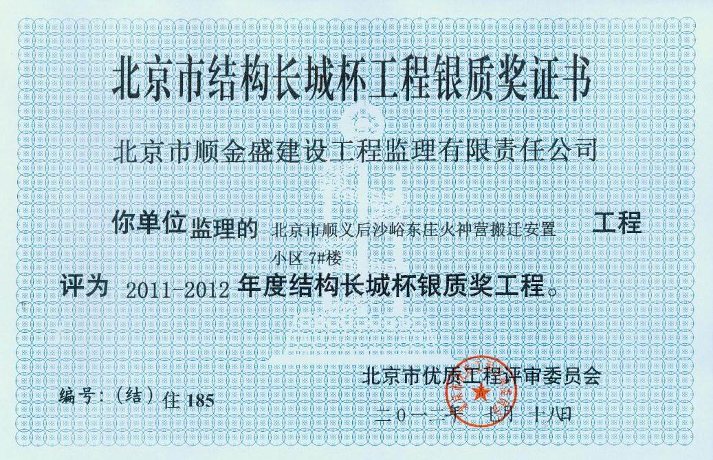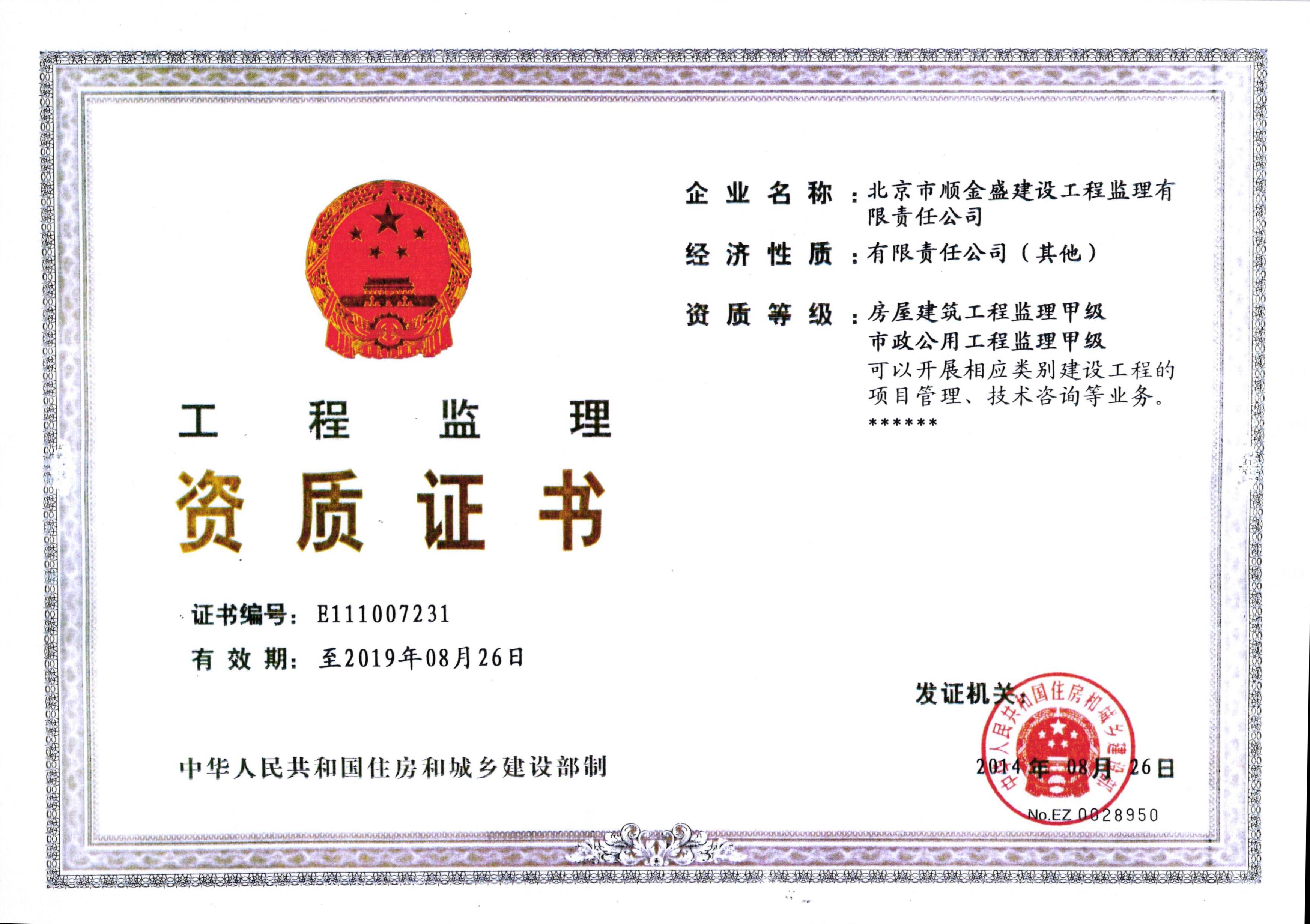 北京市順金盛建設(shè)工程監(jiān)理有限責(zé)任公司成立于1996年6月,具備房屋建筑工程監(jiān)理甲級(jí),市政公用工程監(jiān)理甲級(jí)資質(zhì),主要從事相應(yīng)類別建設(shè)工程的工程監(jiān)理、項(xiàng)目管理、技術(shù)咨詢業(yè)務(wù)。公司為北京市建設(shè)監(jiān)理協(xié)會(huì)理事單位、北京市民防協(xié)會(huì)會(huì)員單位。